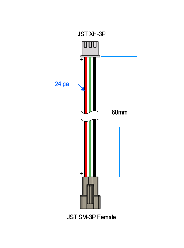 | Jumper | 80mm | 26-30ga | JST-XH-3/JST-SM-F |