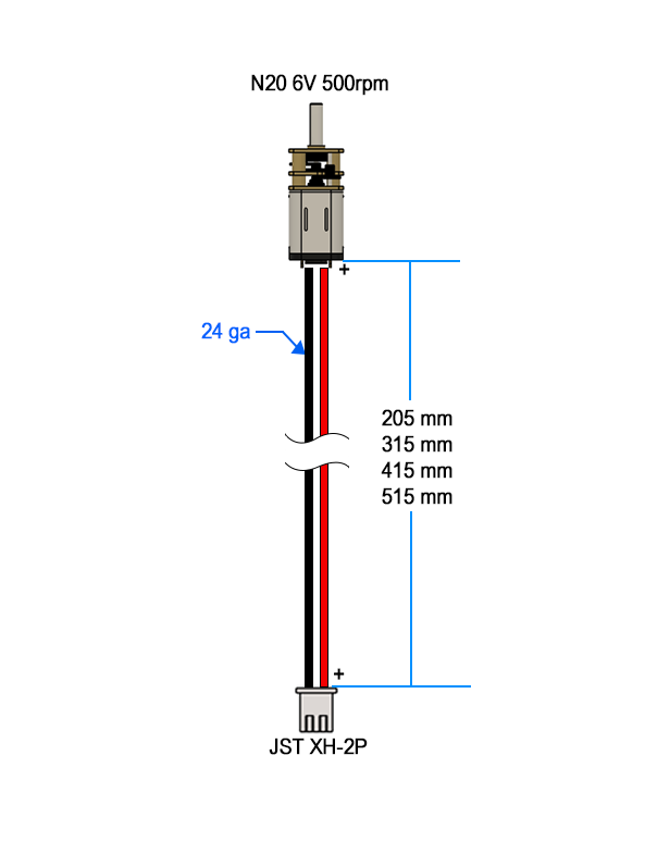 | Lane 1 | N20 6V 500RPM | 205mm | 26ga | JST-XH-2 |