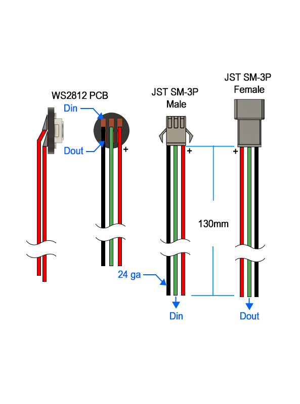 | Lane 3 | WS2812 PCB | 130mm/130mm tail | 26-30ga | JST-SM-M/JST-SM-F |